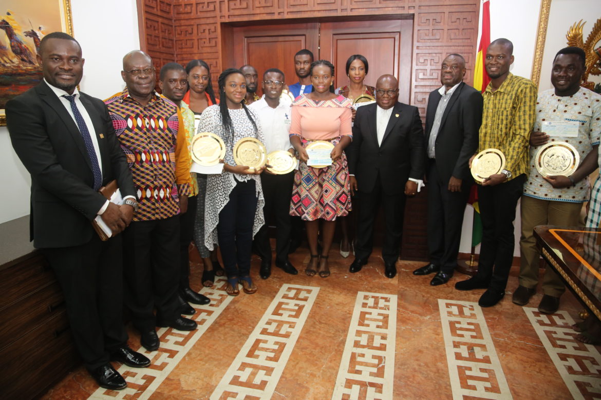 Winners of the maiden presidential pitch yesterday received their prizes from President Akufo-Addo at the Jubilee House after a brief ceremony.